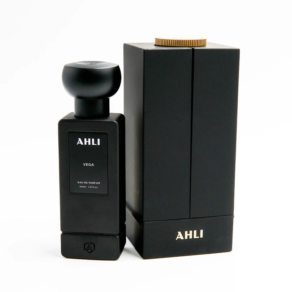 Ahli Vega es es una fragancia oriental cálida, dulce y envolvente con presencia sofisticada. Abre con frambuesa, lichi, fresa y ciruela, aportando una entrada frutal jugosa y profunda. En el corazón, rosa de Damasco y magnolia ofrecen un matiz floral elegante. El fondo de vainilla y ámbar deja una estela dulce, cálida y sensual que perdura en la piel.