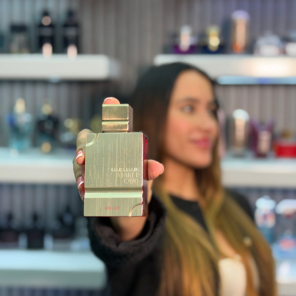 Amber Oud Rouge de Al Haramain Perfumes es una fragancia de la familia olfativa Ámbar Floral para Hombres y Mujeres. Amber Oud Rouge se lanzó en 2019. La Nota de Salida es azafrán; la Nota de Corazón es jazmín; las Notas de Fondo son ámbar gris, almizcle y extracto de cedro blanco.