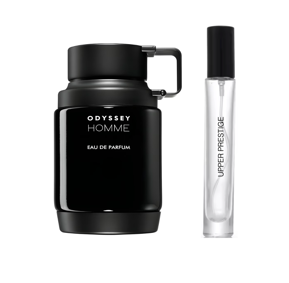 Odyssey Homme de Armaf  es una fragancia masculina intensa y sofisticada que combina calidez dulce con carácter oriental. Abre con vainilla y ámbar ofreciendo una entrada acogedora y envolvente. En el corazón, las notas especiadas orientales con iris aportan profundidad y elegancia. Finalmente, el fondo de vainilla, cuero y jazmín deja una estela cálida, sensual y memorable.