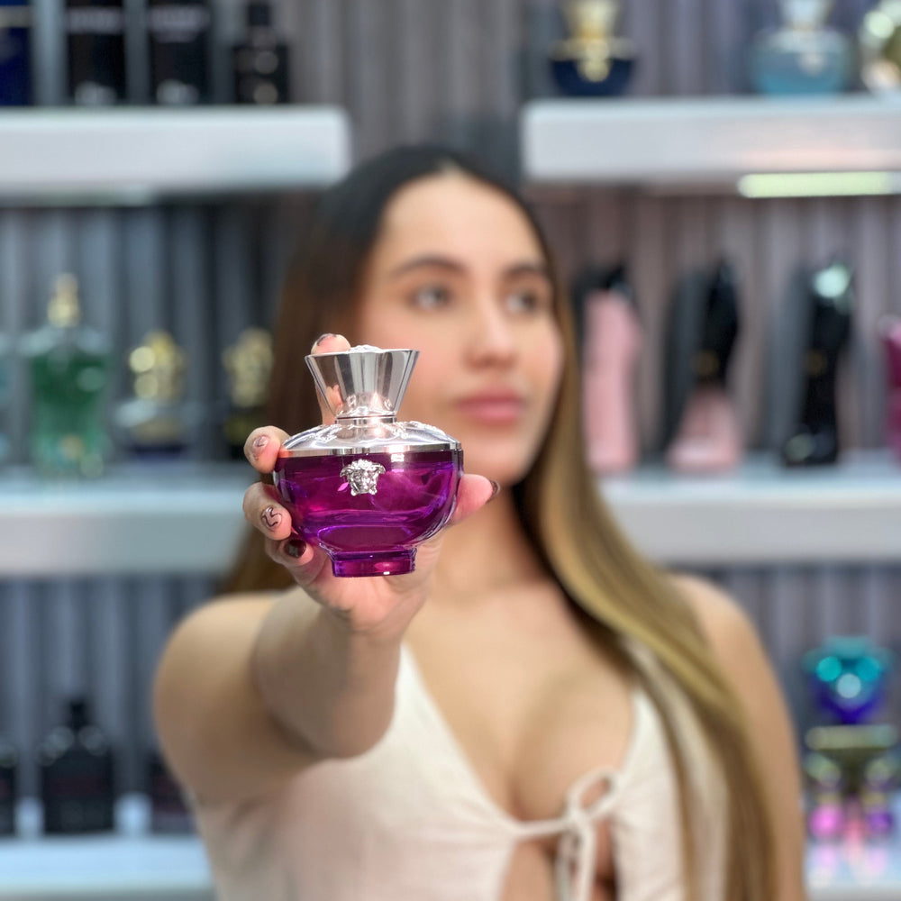 Una fragancia brillante, que combina notas tan perfectas como la bergamota para un toque fresco todo el día, la cual se mezcla con una naranja recién cultivada y unos delicados pero muy resultantes aromas a fresia que ofrecen ese toque púrpura llamativo. Su empaque evoca a la cultura y mitología que es emitida por la imaginación de la cabeza de Versace y sus letras que hacen referencia a su firma.
