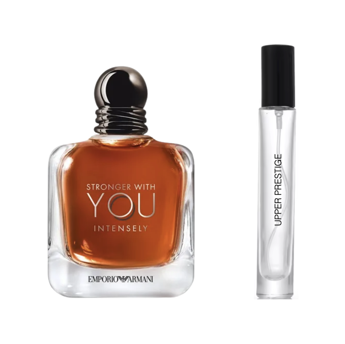 Emporio Armani Stronger With You Intensely de Giorgio Armani es una fragancia de la familia olfativa Oriental Fougère para Hombres. Emporio Armani Stronger With You Intensely se lanzó en 2019. Las Notas de Salida son pimienta rosa, enebro de Virginia y violeta; las Notas de Corazón son tófe, canela, lavanda y salvia; las Notas de Fondo son vainilla, ámbar, haba tonka y gamuza.