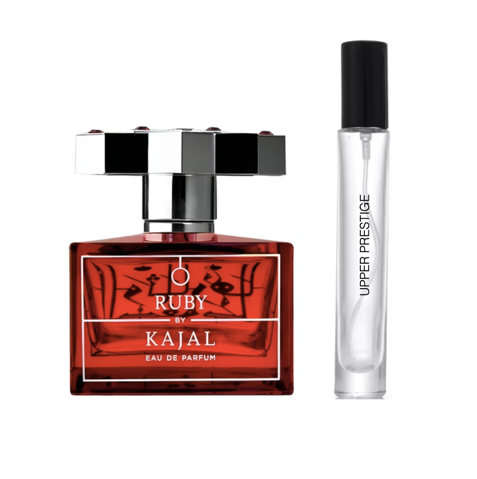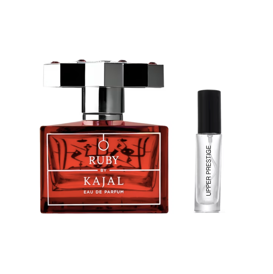 Ruby de Kajal es una fragancia de la familia olfativa Oriental Vainilla para Hombres y Mujeres. Esta fragancia es nueva. Ruby se lanzó en 2025. La Nariz detrás de esta fragancia es Hüseyin Erdoğmuş. Las Notas de Salida son cereza, bayas rojas, piña, coco y almendra; las Notas de Corazón son crema batida, azúcar moreno y helado; las Notas de Fondo son vainilla, almizcle, haba tonka, ámbar y benjuí.
