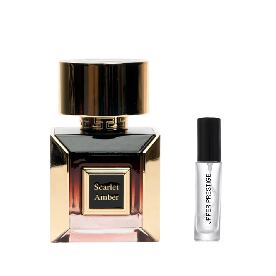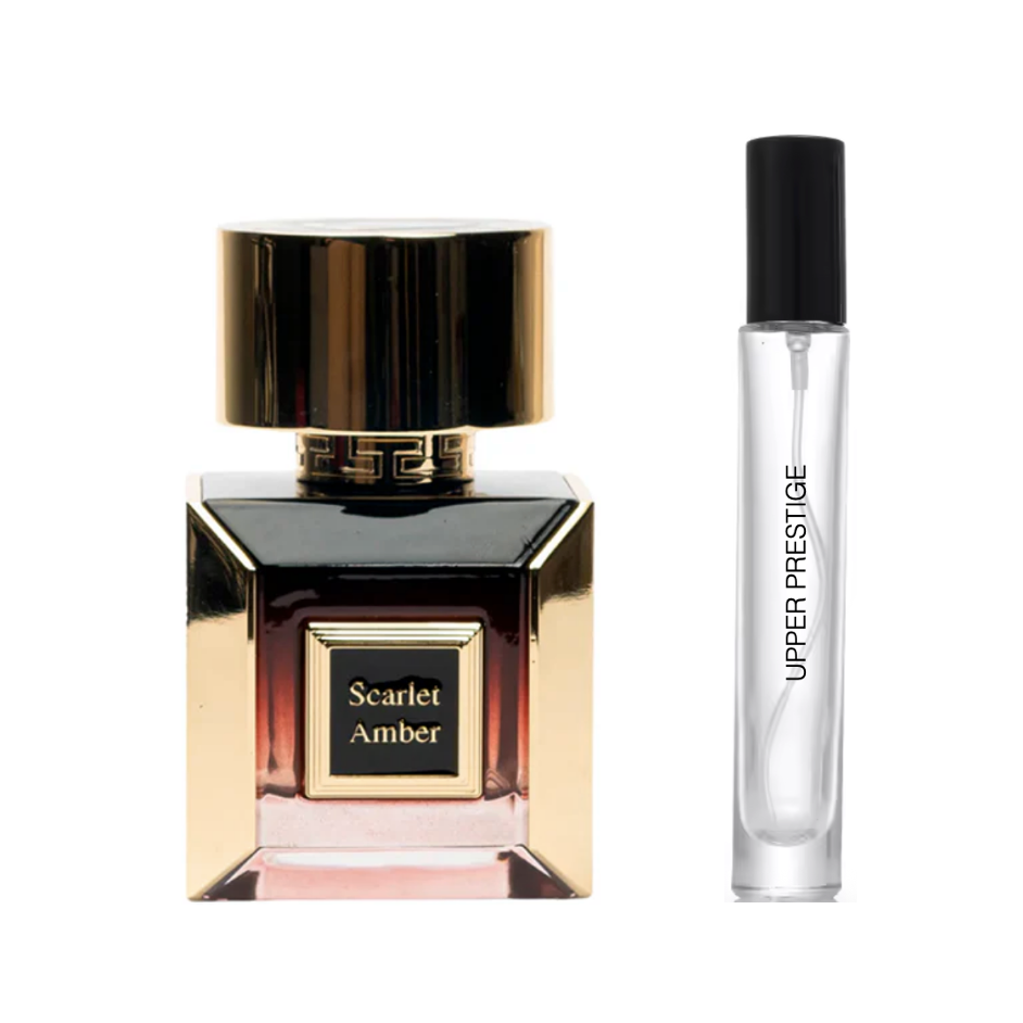 El fondo ambarado se asienta con una rica base de ámbar gris y musgo de roble, que se entrelazan para crear una estela cálida, elegante y duradera. Su equilibrio perfecto entre dulzura, frescura y calidez la convierte en una fragancia versátil para usar en cualquier ocasión, desde eventos formales hasta encuentros íntimos. "Scarlet Amber" es una expresión de lujo moderno, diseñada para quienes desean destacar con una esencia inolvidable.
