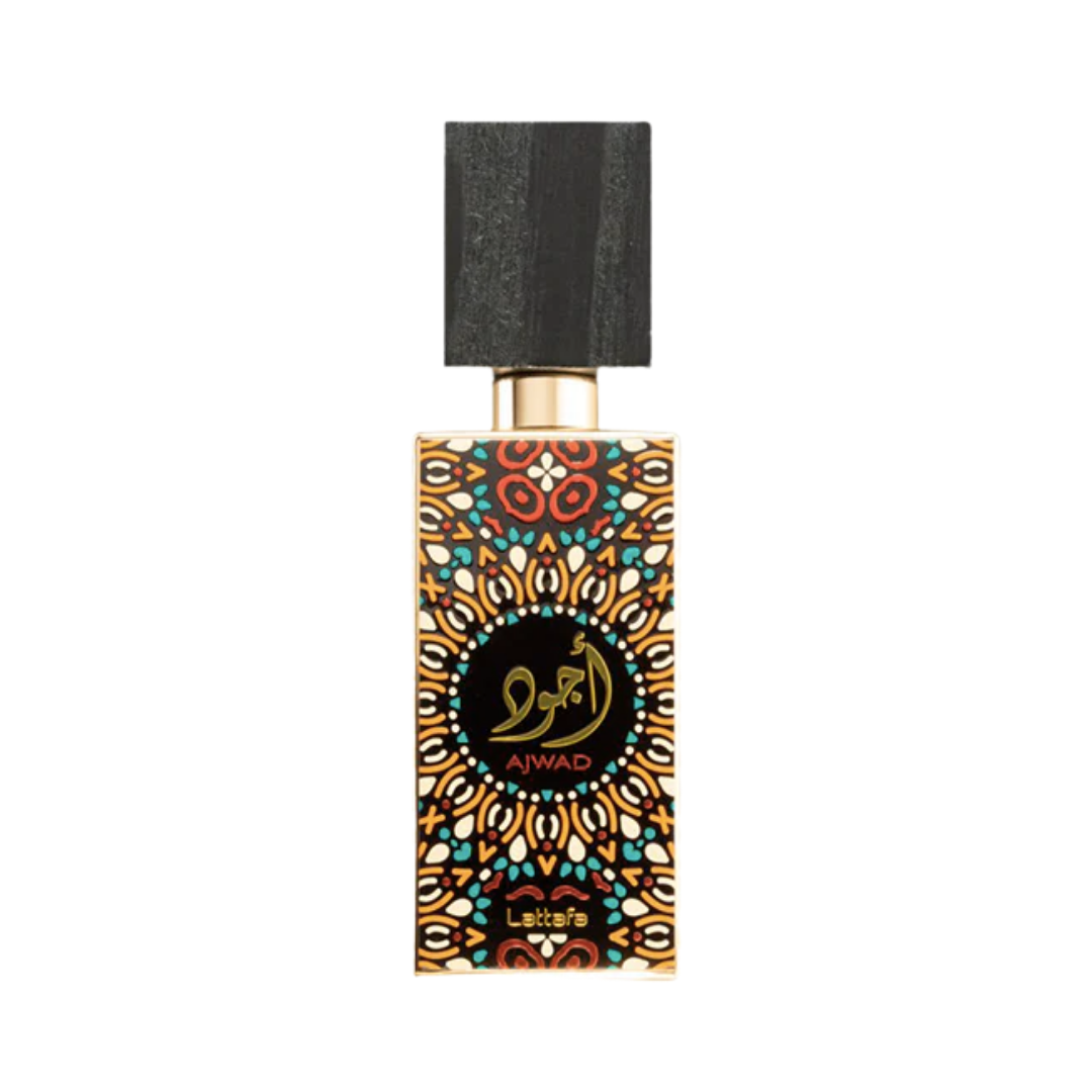 Ajwad de Lattafa Perfumes es una fragancia de la familia olfativa Amaderada Aromática para Hombres y Mujeres. Ajwad se lanzó en 2021. La Nota de Salida es notas afrutadas; las Notas de Corazón son rosa y jazmín; las Notas de Fondo son almizcle, vainilla, ámbar y cedro.