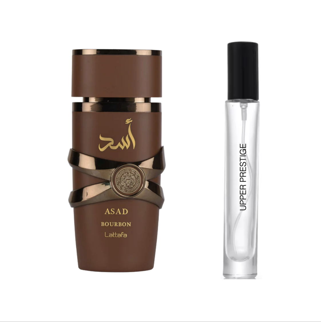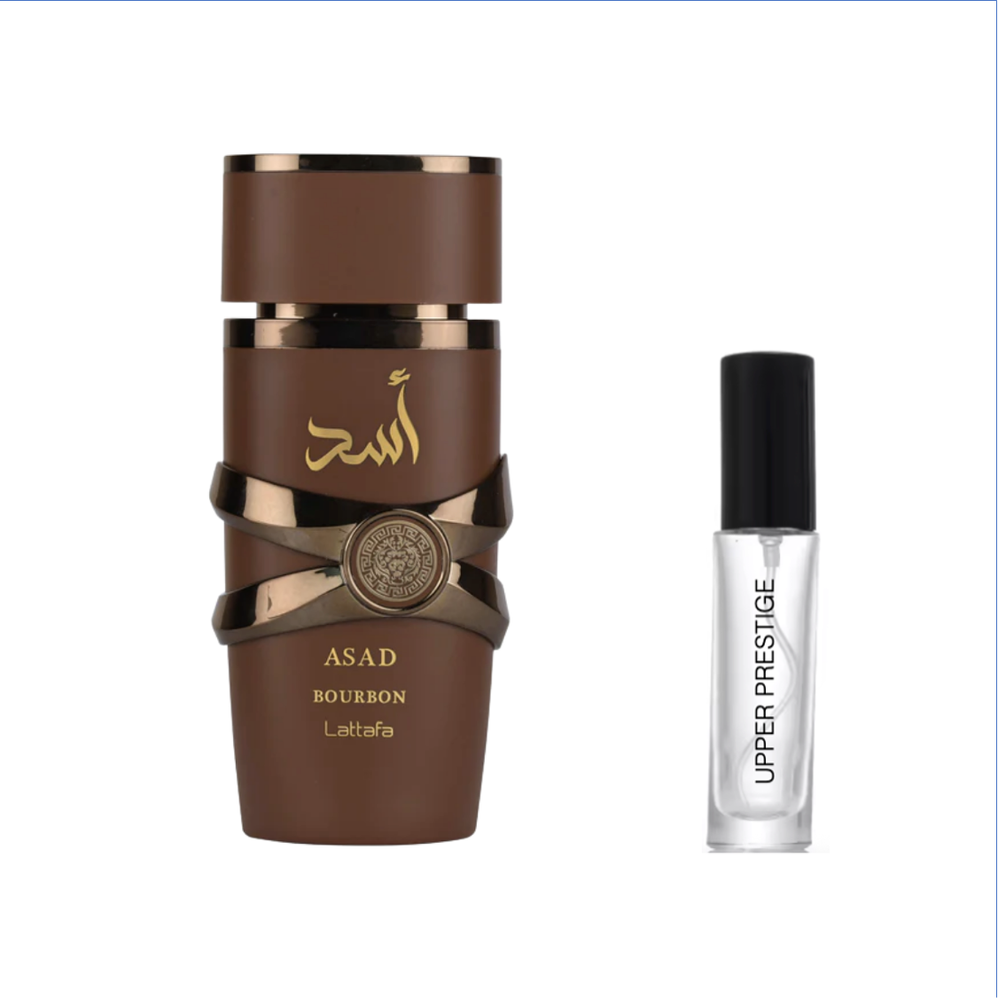Asad Bourbon de Lattafa Perfumes es una fragancia de la familia olfativa Oriental Especiada para Hombres. Esta fragrancia es nueva. Asad Bourbon se lanzó en 2025. Las Notas de Salida son lavanda, pimienta rosa y ciruela Mirabel; las Notas de Corazón son cacao, Davana y nuez moscada; las Notas de Fondo son vainilla Bourbon, ámbar y vetiver.