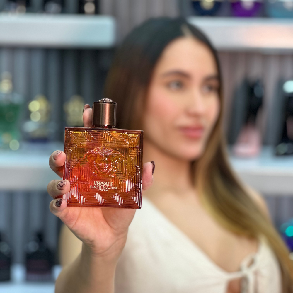 IEros Najim de Versace es una fragancia masculina oriental amaderada y especiada con un carácter cálido y sofisticado. Abre con mandarina italiana y caramelo, ofreciendo una entrada cítrica dulce y envolvente. En el corazón, el cardamomo y oud aportan profundidad y un toque especiado intenso. El fondo de incienso, pachulí y vetiver deja una estela profunda, ahumada y elegante.